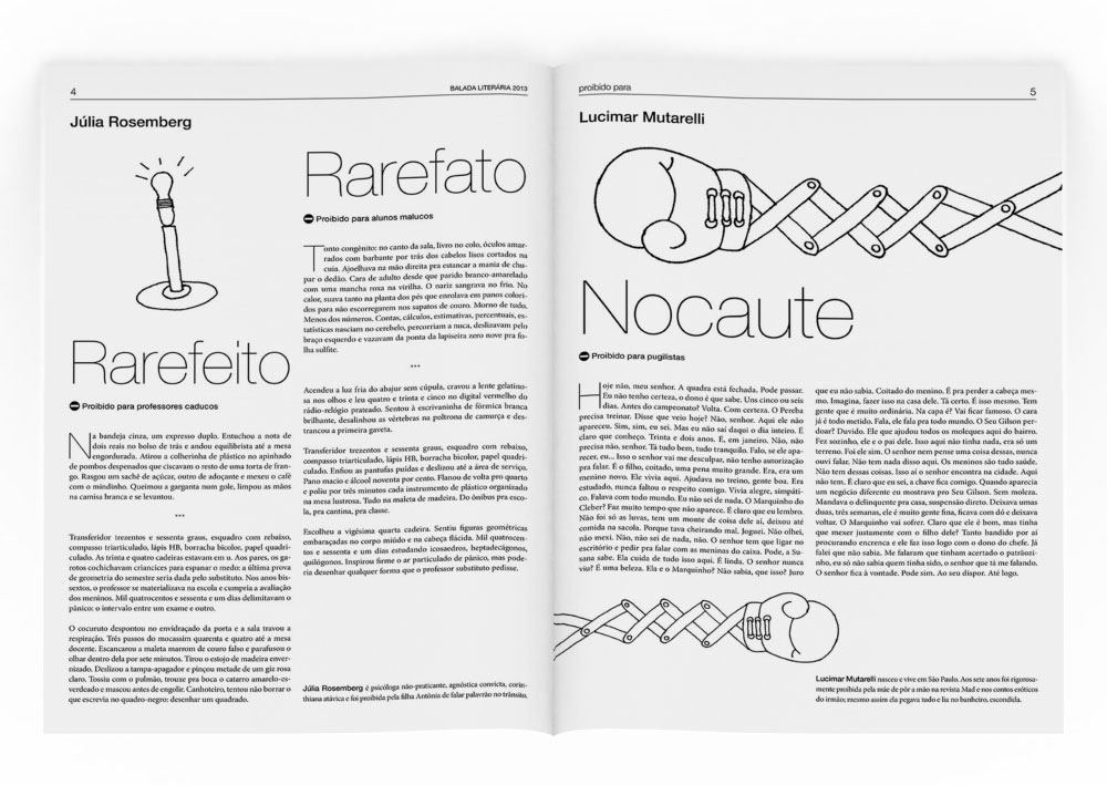Ilustrações para jornal editado dentro da programação da Balada Literária 2013. Edição: Lucimar Mutarelli. Coordenação: Marcelino Freire.